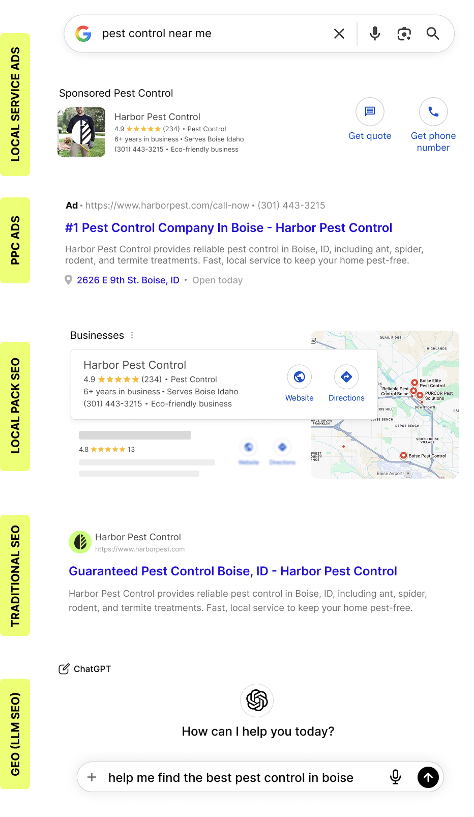 They see Google search results, map listings, reviews, and websites all at the same time. If your business isn’t showing up across these results, you’re losing customers to competitors who are.
